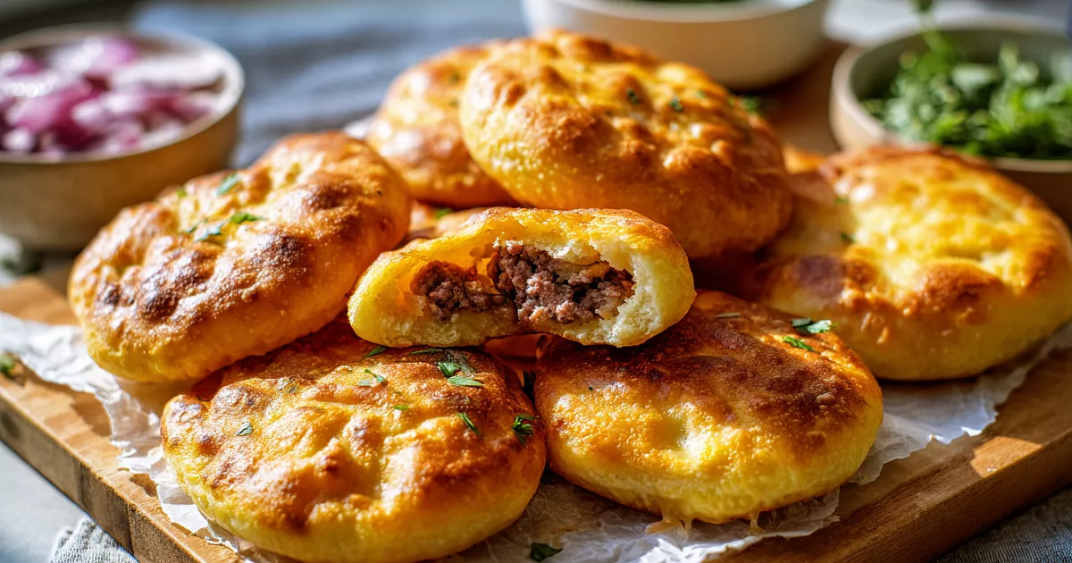 Тесто на кипятке с натёртой луковицей — нежное, пузырчатое, совсем не липнет к рукам и идеально подходит к любой солёной начинке.
