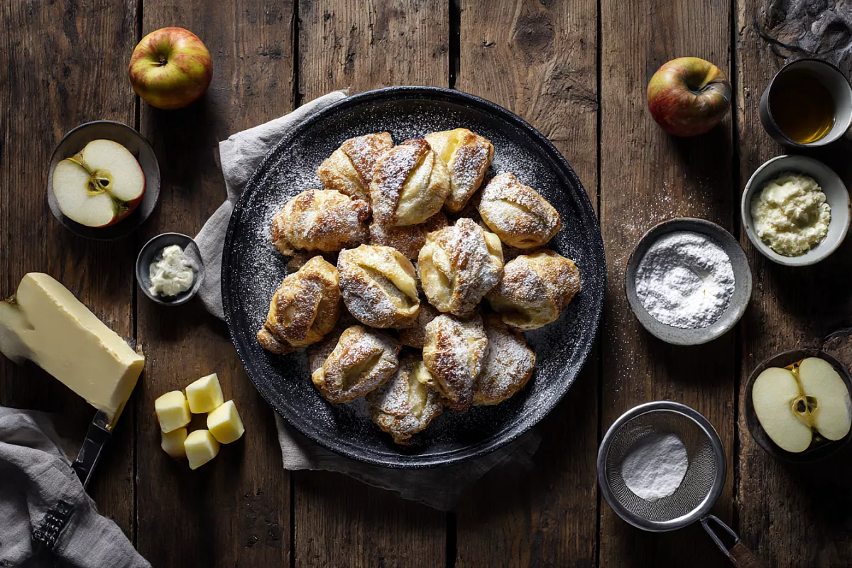 Если хочется выпечки к чаю «на раз-два», эти творожные конвертики с яблоками выручат.