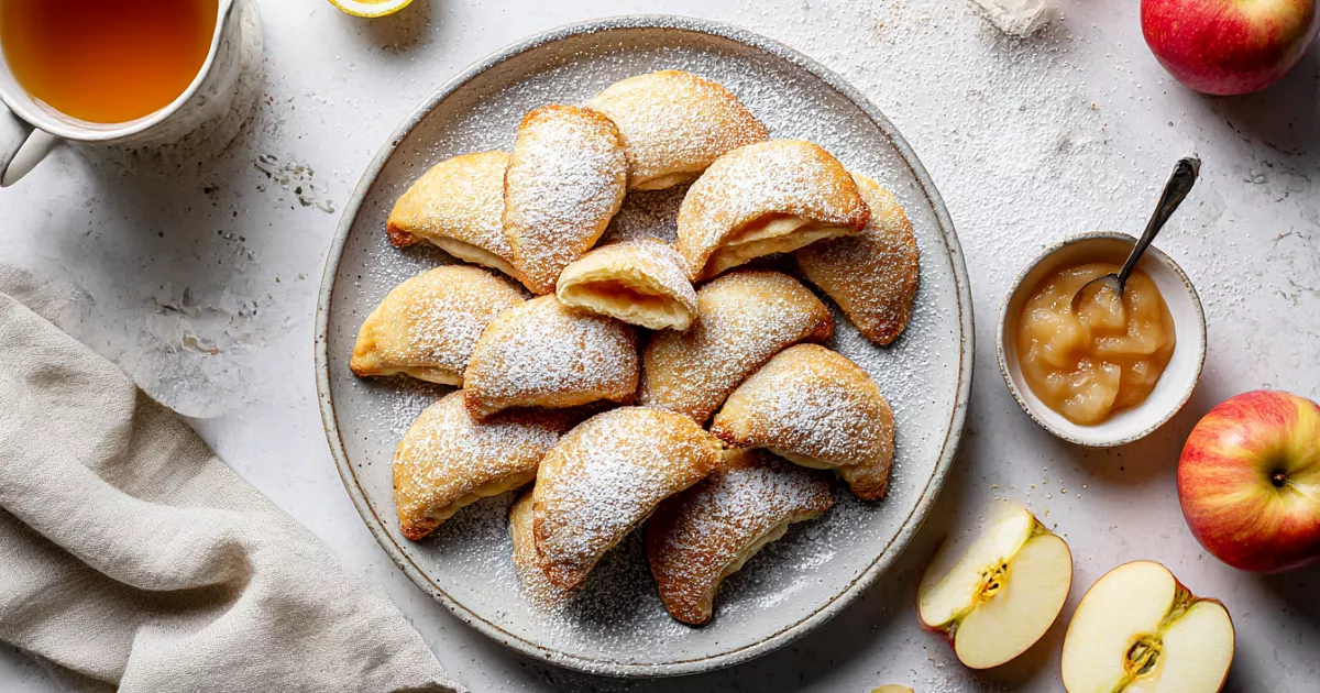 Это то самое печенье, которое исчезает со стола быстрее, чем успевает остыть. Творожное тесто получается нежным и мягким, а начинка — ароматная, яблочная, чуть карамельная. Готовится всё из самых обычных продуктов, без сложностей: замесили тесто, быстро припустили яблоки — и дальше только формовать рогалики