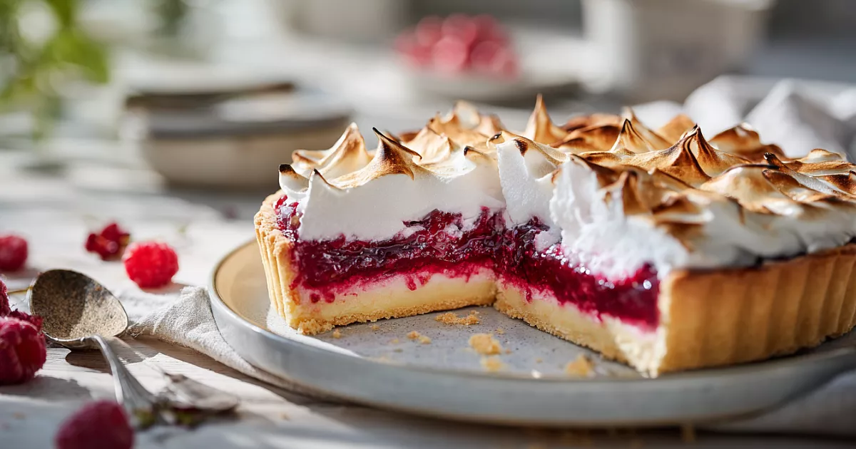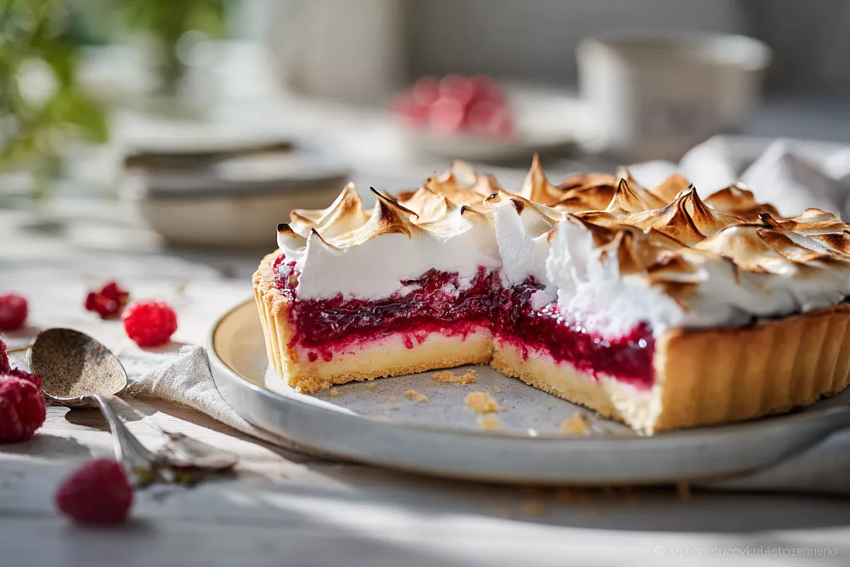 Три слоя — каждый вкуснее предыдущего. Песочная основа, густое ягодное пюре с кислинкой и шапка нежнейшей меренги.