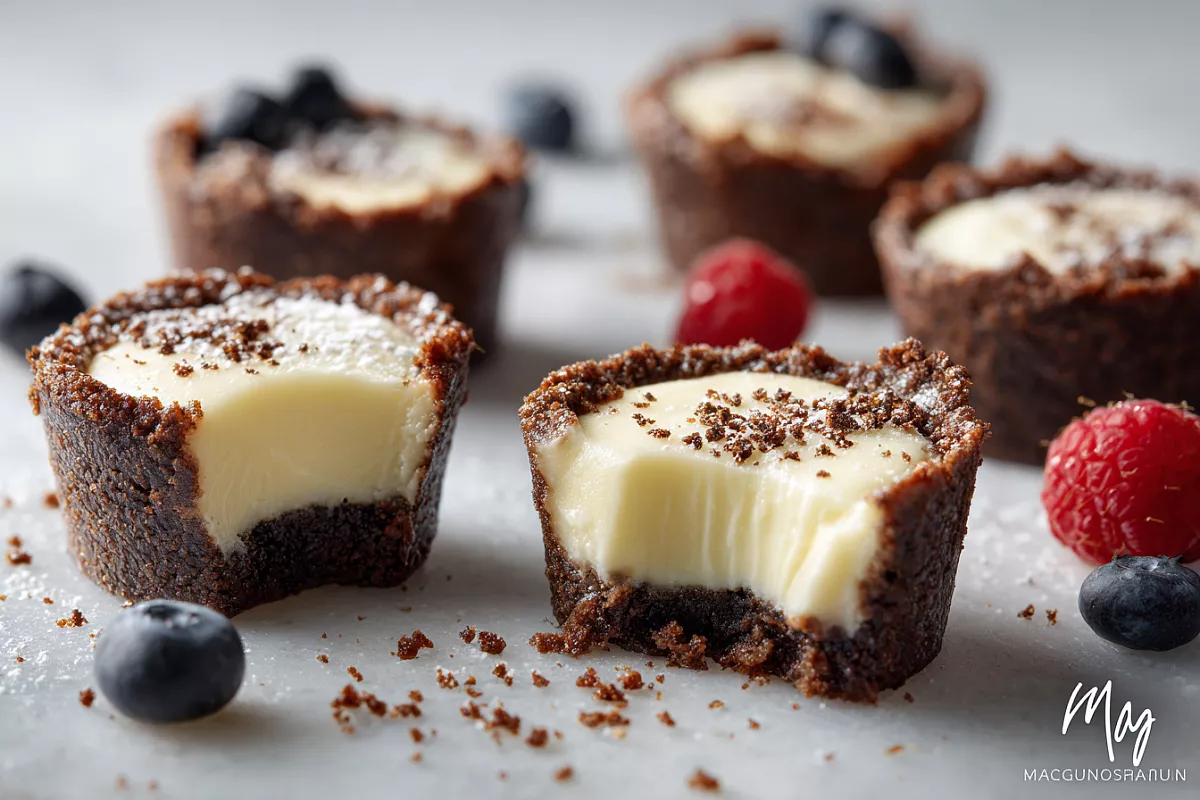 Даём пирожным полностью остыть в форме, затем убираем в холодильник минимум на 2–3 часа (лучше на ночь). Достаём из формочек — они легко выскальзывают.