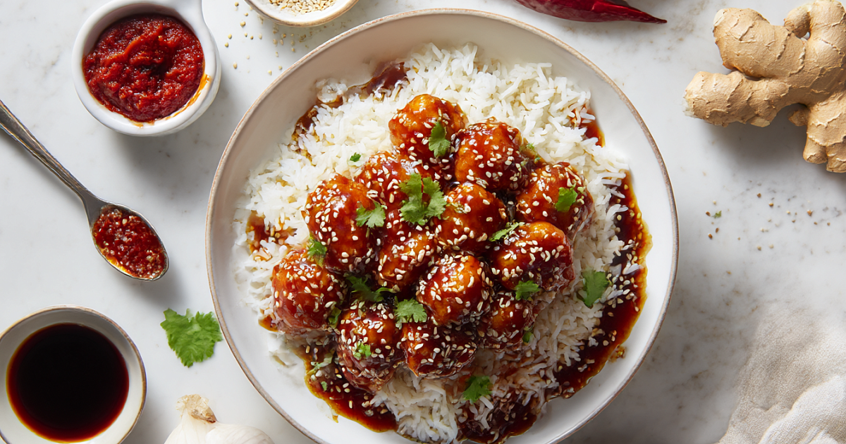 Нежное куриное филе, имбирь, чеснок и глянцевый соус на томатной пасте — отличный ужин с рисом за считанные минуты.