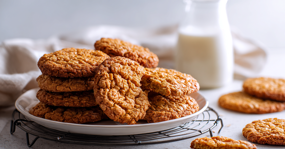 Готовое печенье сразу перекладываем на решётку — горячее оно мягкое, а при остывании становится идеально хрустящим и рассыпчатым.