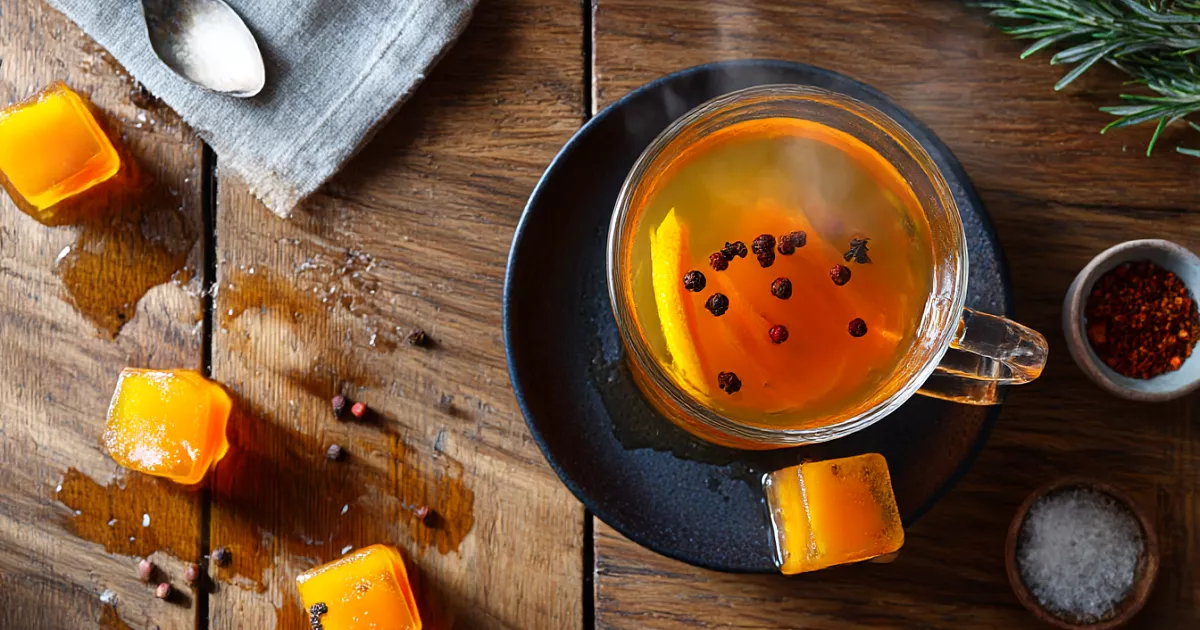 Такой чай особенно выручает в холодное время года: не нужно каждый раз мыть ягоды, возиться с цедрой и специями, всё уже готово в одном кубике. Я обожаю этот напиток и поэтому всегда делаю объёмную партию: часть сразу завариваю в чайнике, а остальное замораживаю. Потом достаёшь один кубик, заливаешь кипятком — и через пару минут в чашке густой аромат облепихи, апельсина, корицы и имбиря. Напиток получается чуть кисловатым, бодрящим, но при желании можно легко сделать его более сладким.