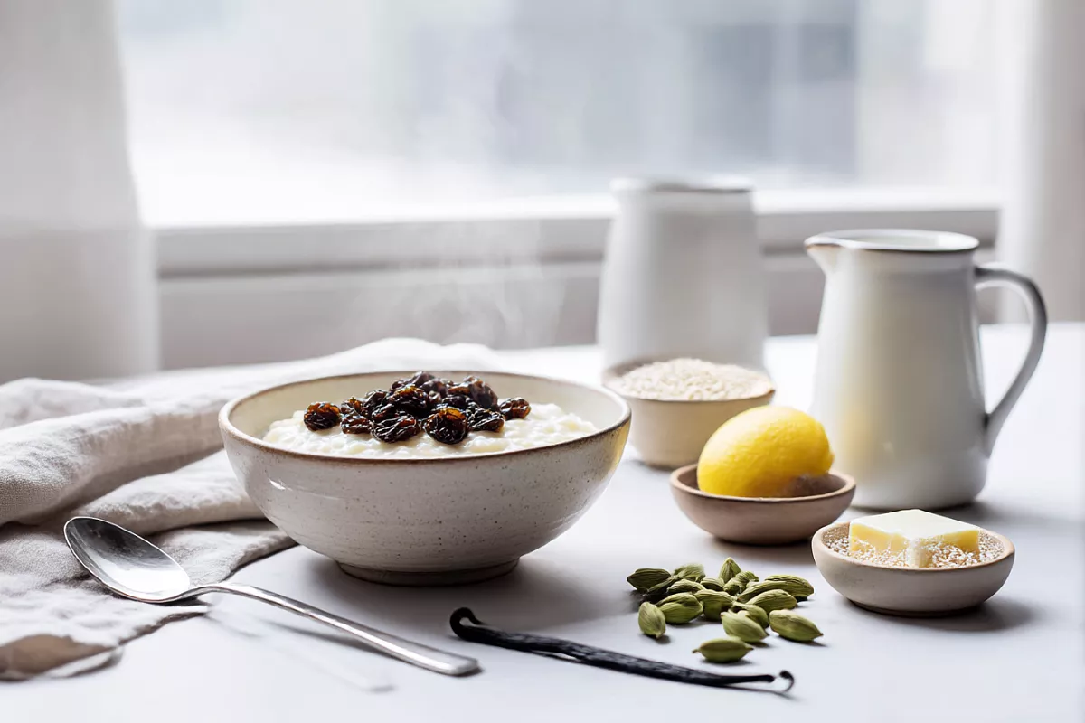 Шаг 1. Насыпьте рис в кастрюлю. При желании промойте. Добавьте ваниль, коричневый сахар (не много, примерно 1–2 ст. л.), щепотку соли и немного молотого кардамона.