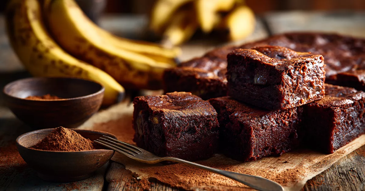 В чашу блендера кладём: 2 спелых банана (лучше с чёрными точками — они слаще), 2 яйца, 40 г какао-порошка (4 ст. л. с горкой), 1 ч. л. разрыхлителя без горки.