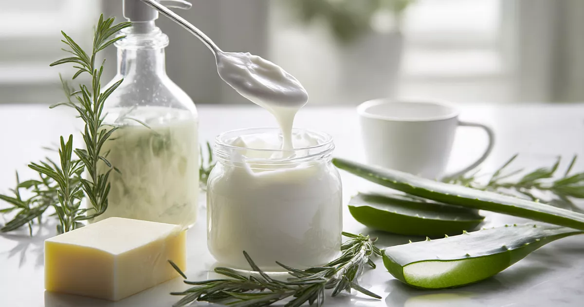 Сделаем густой шампунь из отвара розмарина, алоэ и нейтрального глицеринового мыла — текстура получается прямо «кремовая».