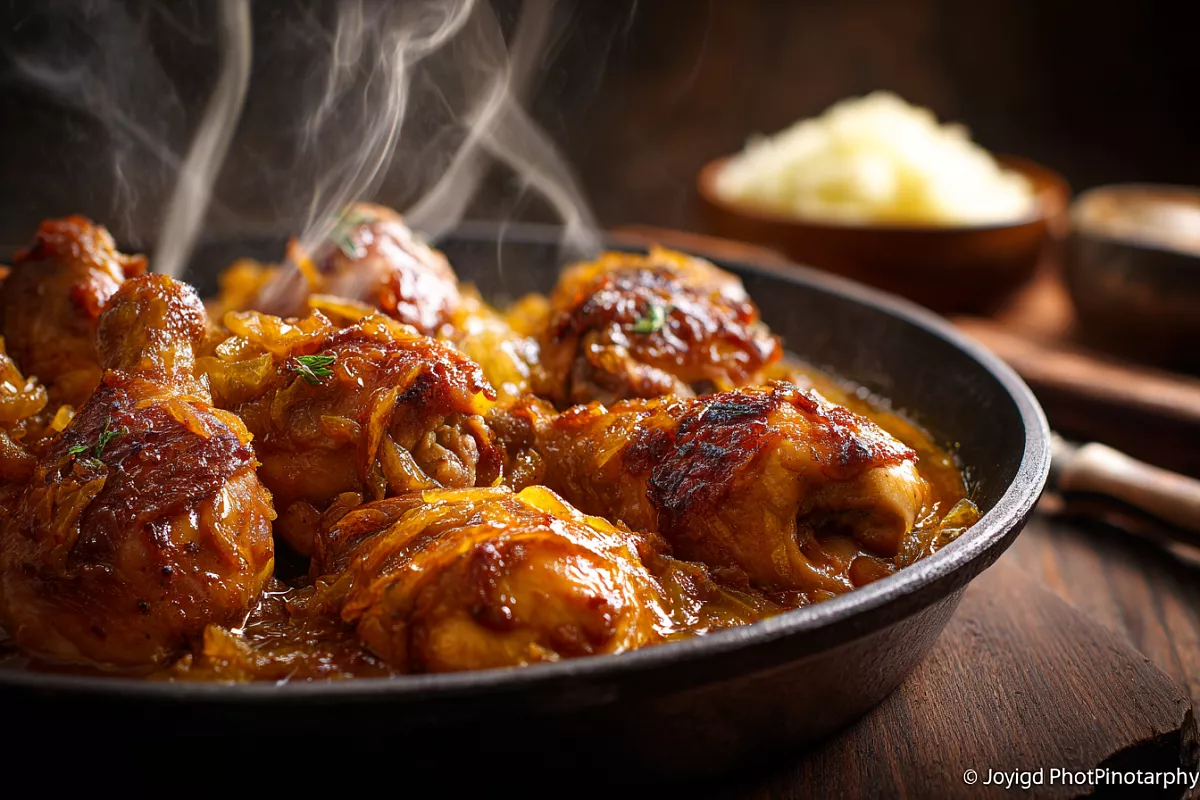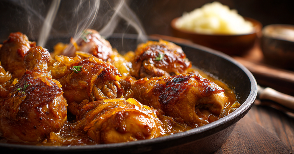 Сочная курочка в глянцевом карамельно-луковом соусе — готовится за 30 минут, а вкус такой, будто вы часами колдовали у плиты.