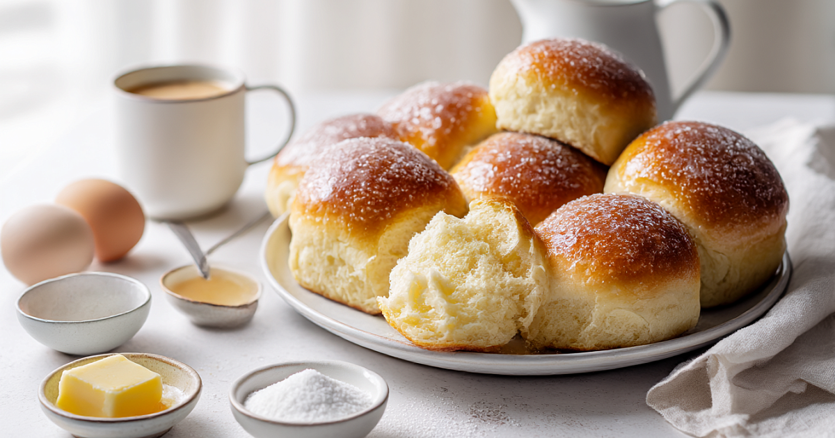 Сегодня испечём простые сахарные булочки: внутри — нежное воздушное тесто, сверху — сладкая хрустящая корочка. Делается из доступных продуктов, а результат такой, что хочется налить чай и не торопиться.