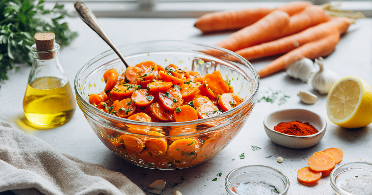Сочная морковь со специями, лимоном, чесноком и зеленью — отличный вариант и как закуска, и как гарнир к мясу, рыбе или сырам.