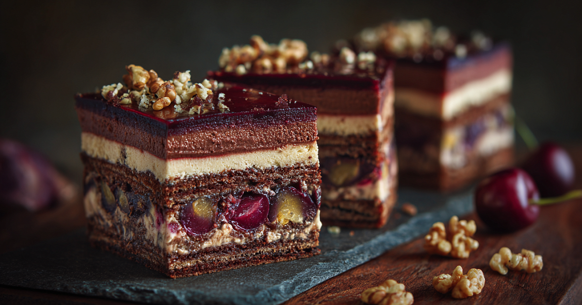 Торт режется идеально, вкус — богатый, с яркими нотами коньяка, чернослива и орехов. Просто бомба!