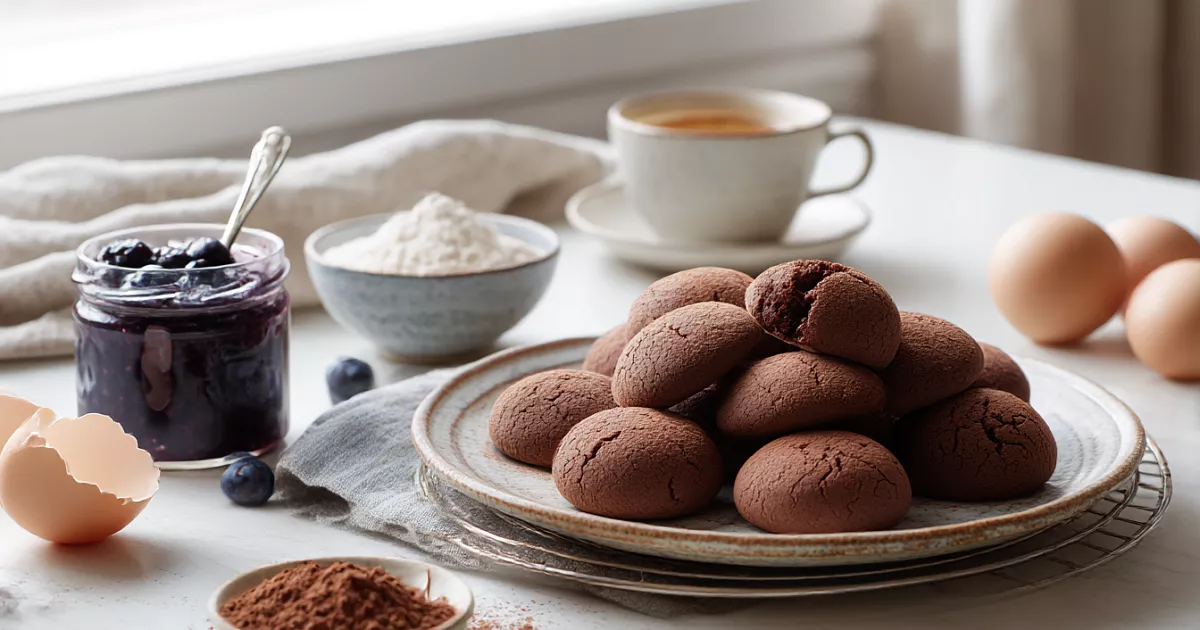 Всего несколько простых продуктов и 15 минут в духовке — и у вас мягкое шоколадное печенье из любого варенья.