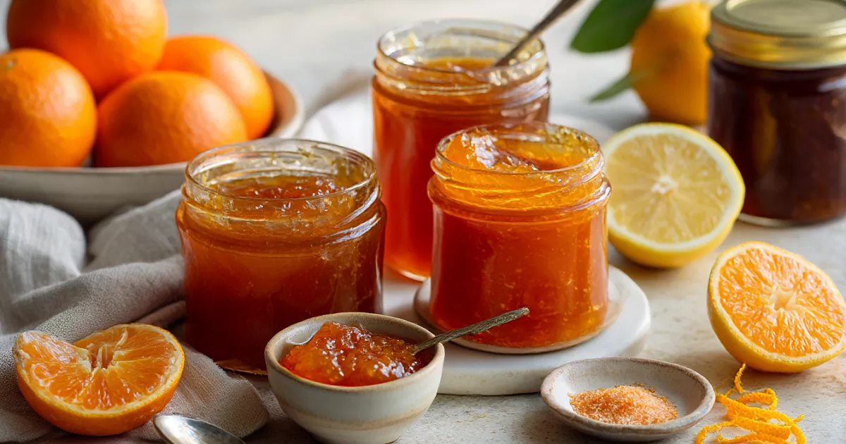 Очищенную мякоть апельсинов и лимона нарежьте кусочками и измельчите блендером до желаемой степени: можно в пюре, можно с небольшими кусочками. Взвесьте получившуюся массу, чтобы рассчитать сахар и пектин. На 1 кг фруктов берут от 250 до 500 г сахара по вкусу; пектин смешивают с сахаром (примерно 10 г на 500 г сахара) и всыпают в фруктовую массу. Доведите до кипения и варите на среднем огне не более 5 минут, постоянно помешивая. По желанию в конце добавьте тёртую цедру для лёгкой горчинки и более насыщенного цвета.