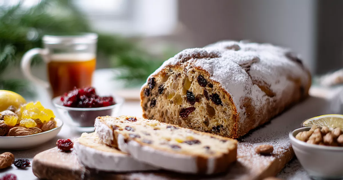 Выпекайте в разогретой до 160 °C духовке 45–50 минут. Через 20–25 минут раздвиньте штоллены. Проверьте готовность деревянной палочкой.