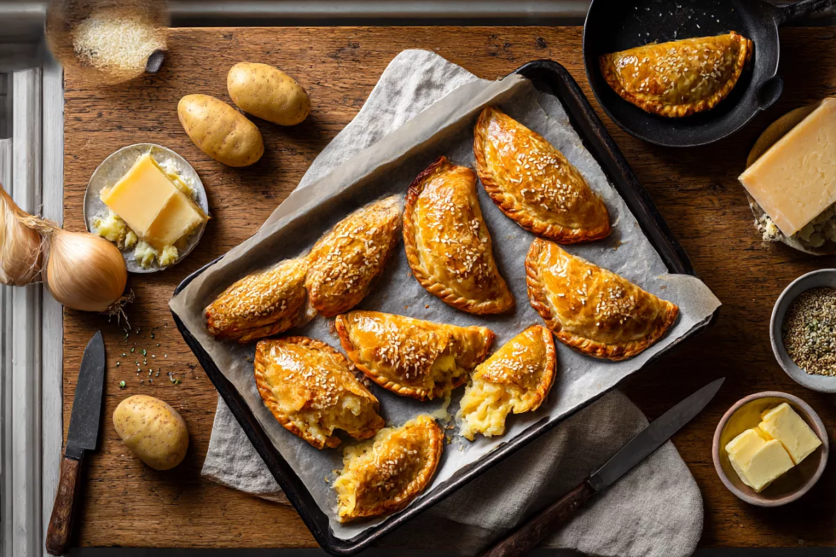 Эти пирожки получаются слоистыми и ароматными благодаря сырному тесту и картофельной начинке с жареным луком. Идеальный вариант для семейного чаепития.