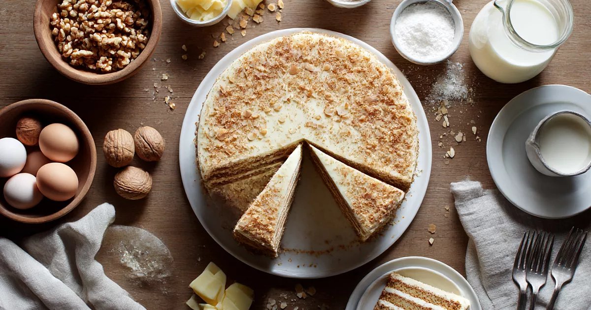 Делюсь рецептом: тонкие ореховые коржи и крем-пломбир с белым шоколадом — готовится проще простого, а на вкус как из лучшей кондитерской.