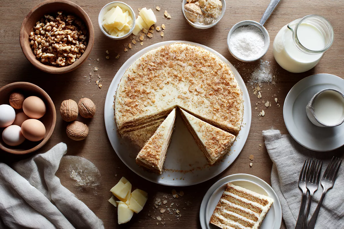 Ореховый торт с кремом-пломбир — настоящая классика домашней выпечки, которую обожают и дети, и взрослые уже несколько десятилетий.