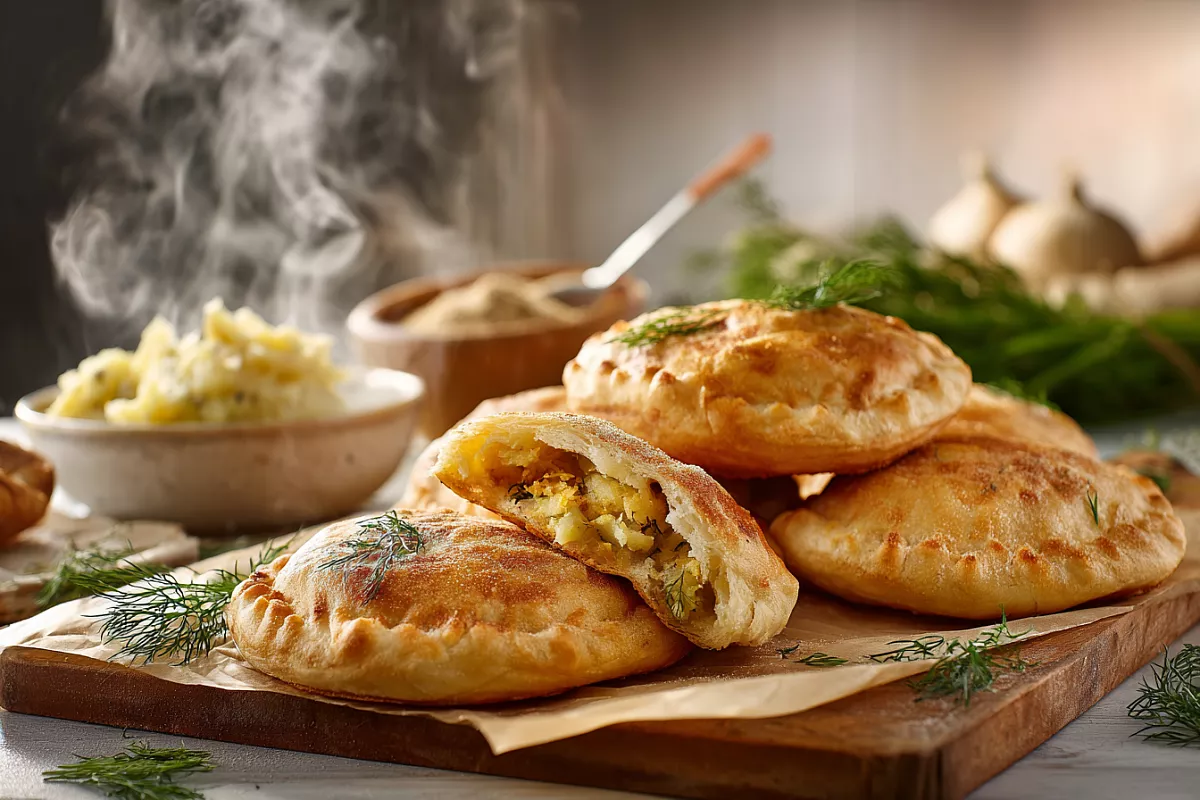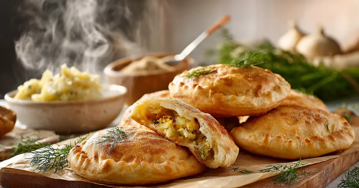 Тонкое мягкое тесто, ароматная картошка с жареным луком и щедрой порцией укропа.