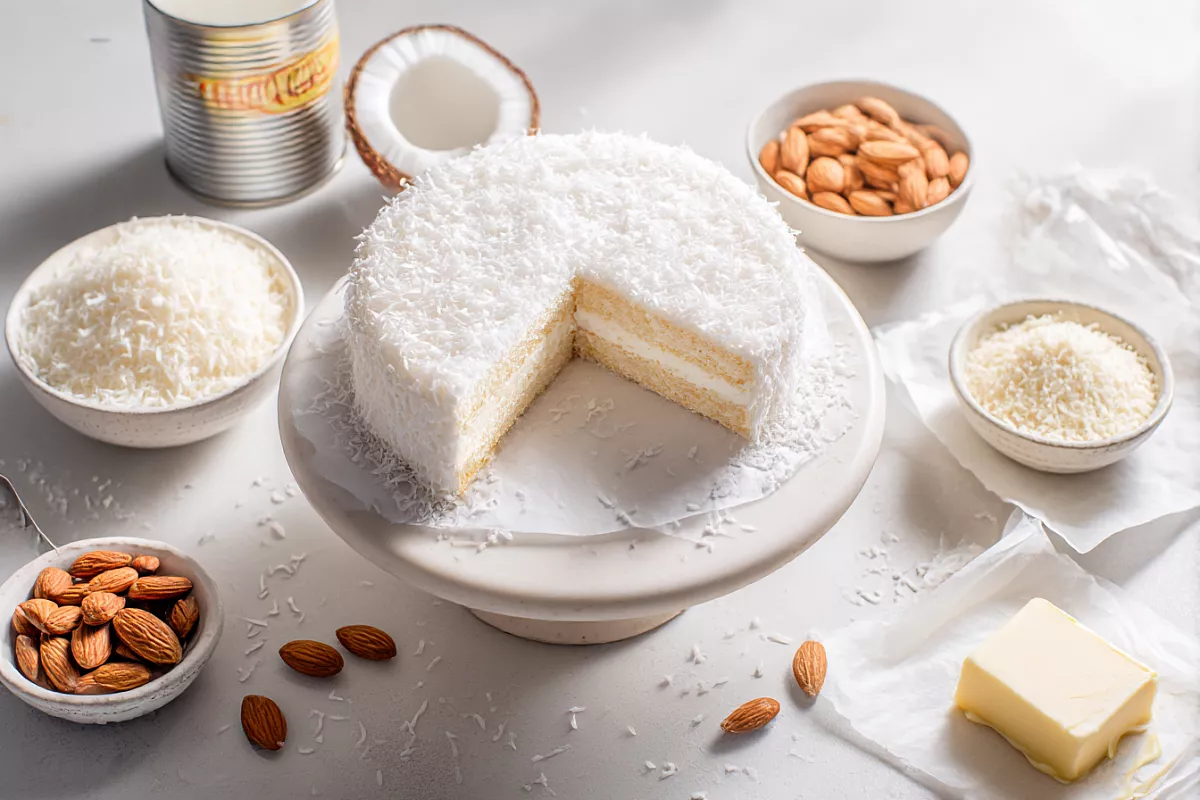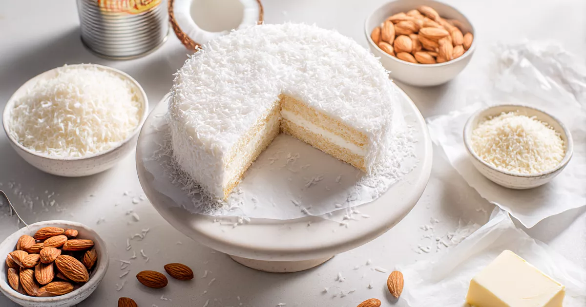 Торт на вафельных коржах с кокосом и миндалём — классика советского детства, которую до сих пор подают на праздниках как «домашний Рафаэлло».