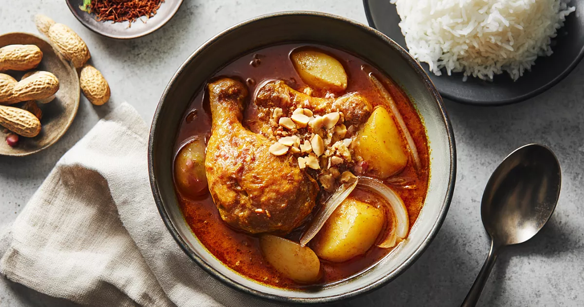 Готовим масаман с курицей, картофелем и арахисом на домашней пасте из красной карри и специй.