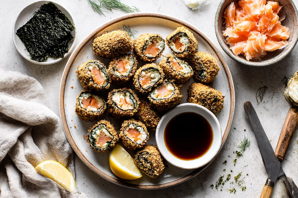 Маленькие обрезки красной рыбы превращаются в сочные рулетики с морской капустой — снаружи хруст, внутри нежность, и никто не догадается, что из "отходов".