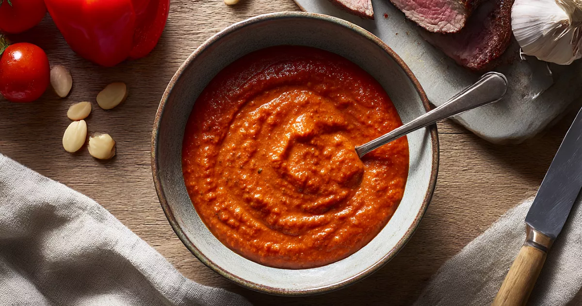 Делюсь рецептом соуса мск по-испански — готовлю его часто, и теперь без него ни один стейк не подаю. Этот соус мск открыл для меня новый мир — простой, как всё гениальное, а вкус такой насыщенный, что хоть ложкой ешь. Похож на гаспачо, но гуще и с орехами. Готовлю на глаз, запекаю овощи целиком, шкурка сама отходит. Храню в холодильнике несколько дней, мажу на хлеб, поливаю мясо или рыбу — везде заходит на ура.