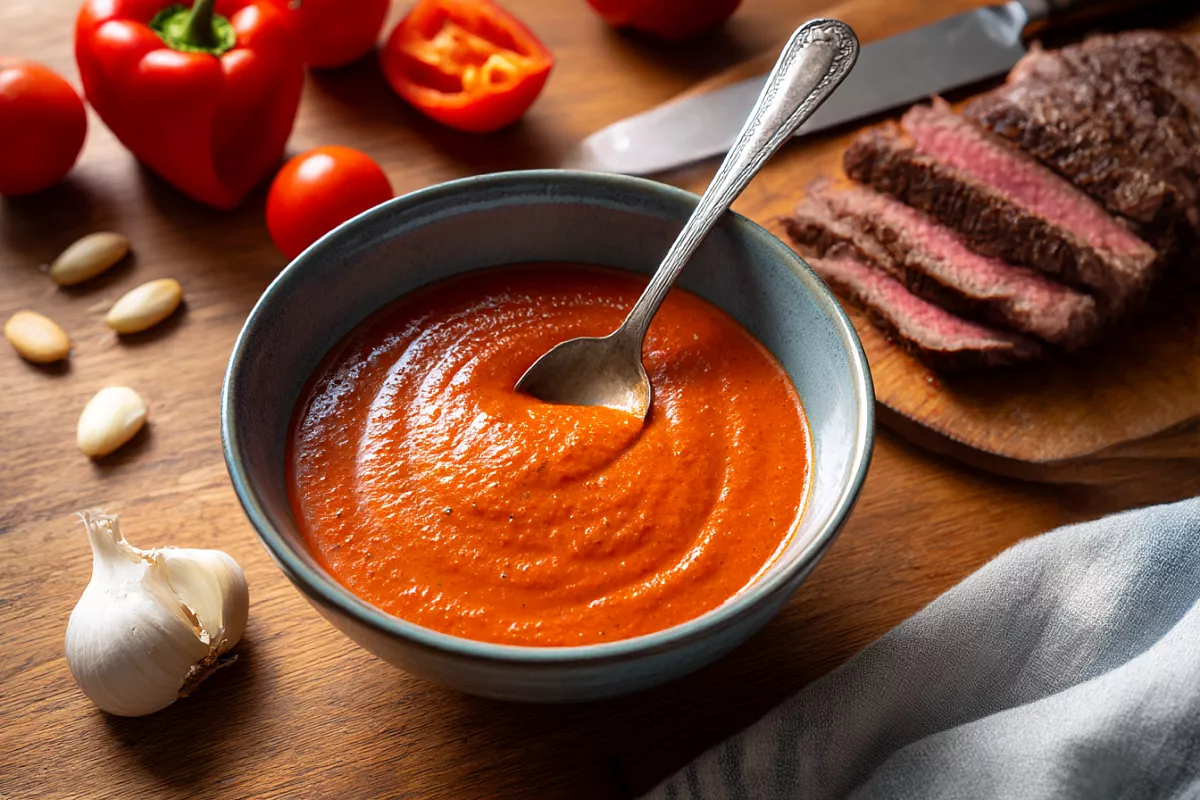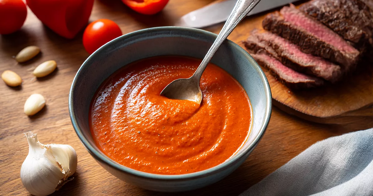 Испанский Ромеско для мяса - яркий, густой, с испанским характером и похож на гаспачо, только плотнее и «грильнее».