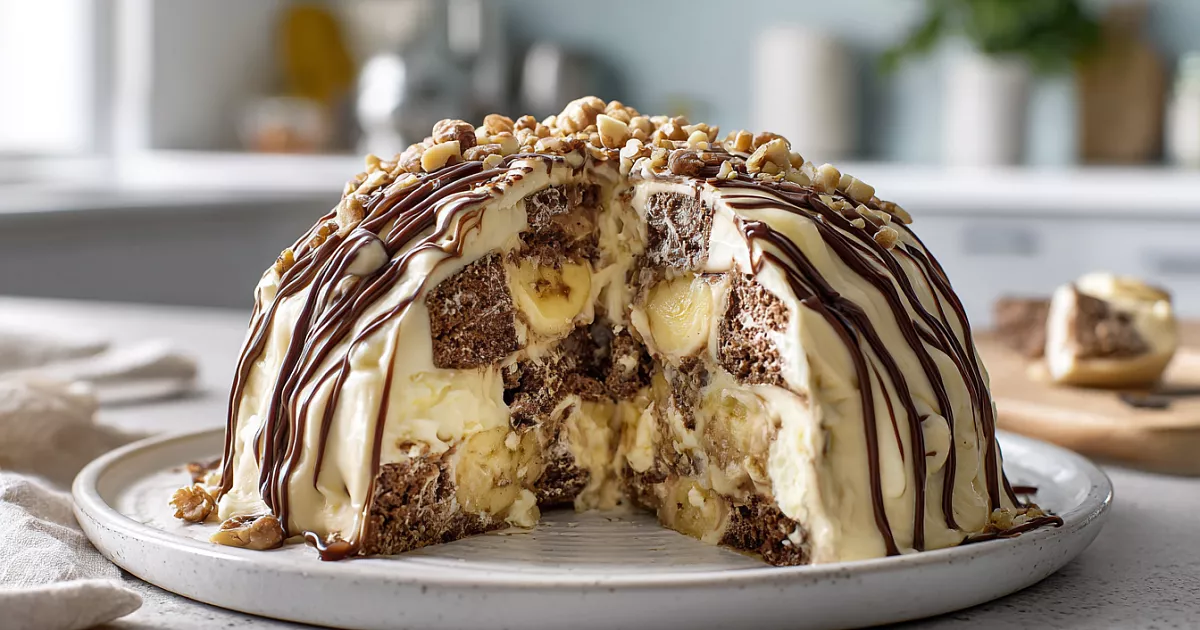 Это самый нежный торт без духовки — банановый крем и шоколадные коржи просто тают во рту.