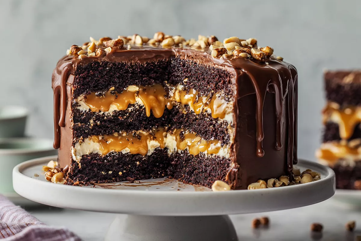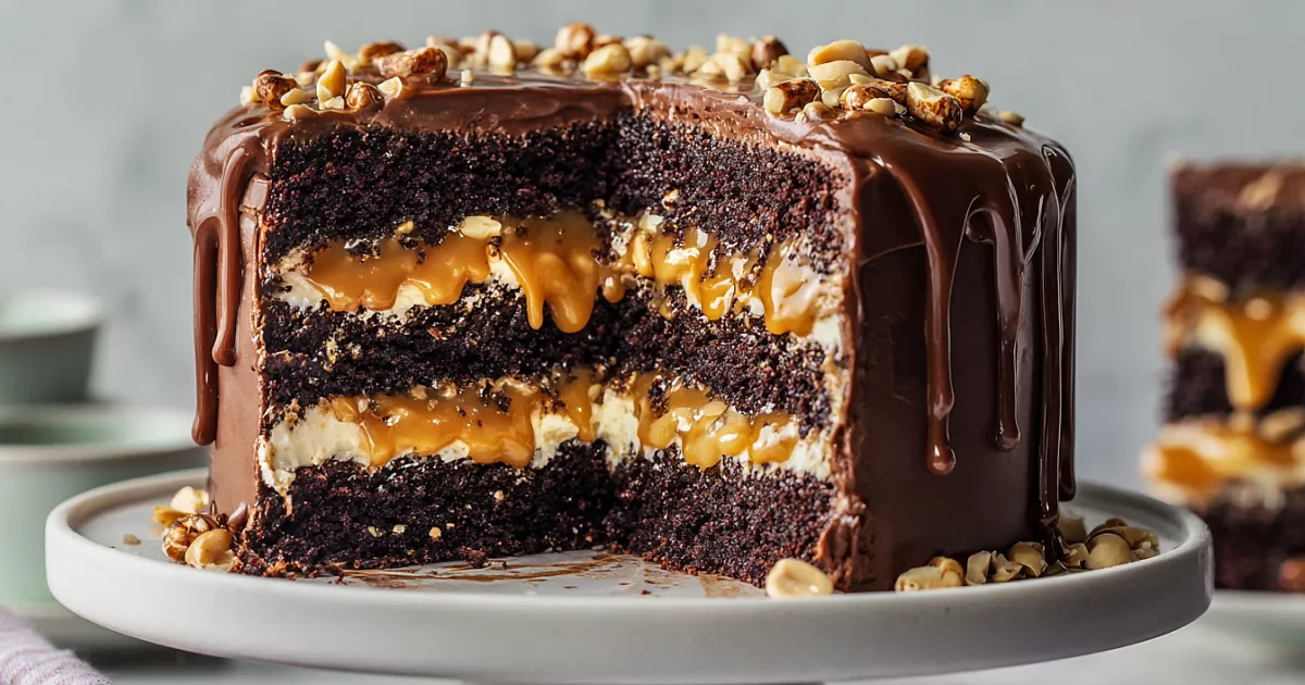 Сегодня делимся подробным рецептом потрясающего торта «Сникерс» — готовится просто, а на вкус как из кондитерской.
