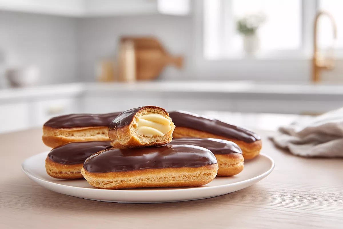 Эклеры получаются очень нежные и воздушные. Крем невероятно вкусный, а шоколадная глазурь делает их идеальными.