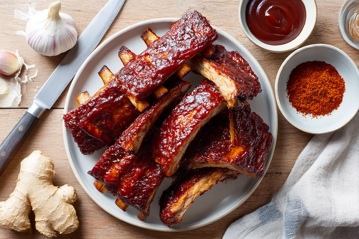 Если лето в городе, а мангала нет — это мой любимый выход. Всё делается обычной духовкой: сначала даём рёбрам вкус в бульоне, потом быстро подсушиваем и смазываем соусом, чтобы появилась та самая липкая корочка.