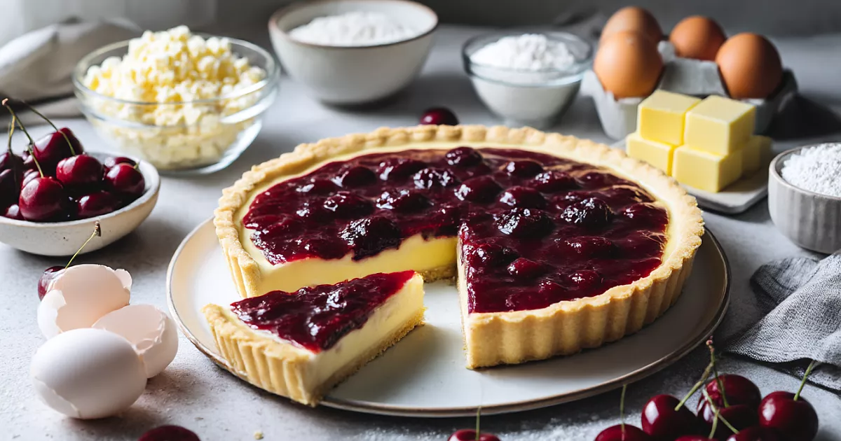 Делюсь рецептом своего любимого пирога на песочном тесте с нежной творожной начинкой и вишневым конфитюром — теперь пеку только его.
