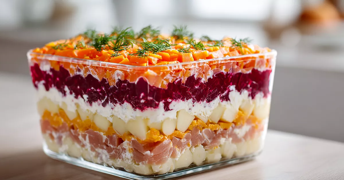 Шеф-повар Василий Емельяненко делится обновлённым рецептом селёдки под шубой с копчёной селёдкой.