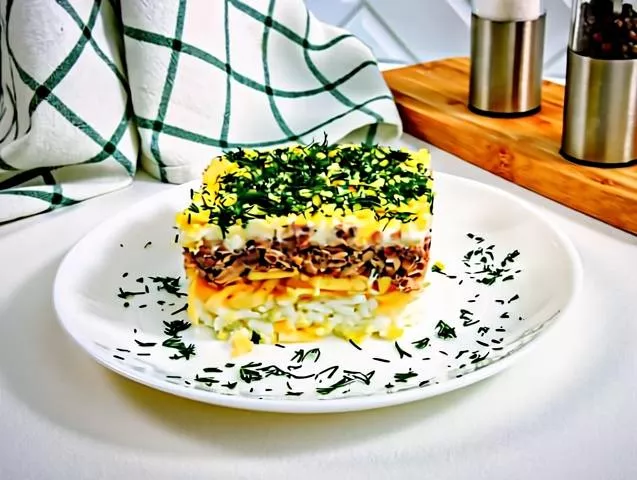 Салат "Австрийский" — это вариация на тему "Мимозы", но с более быстрым приготовлением и уникальным вкусом.