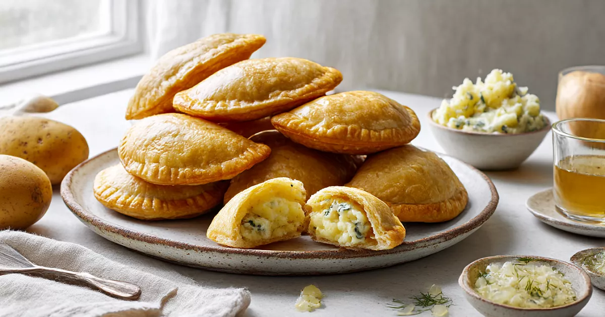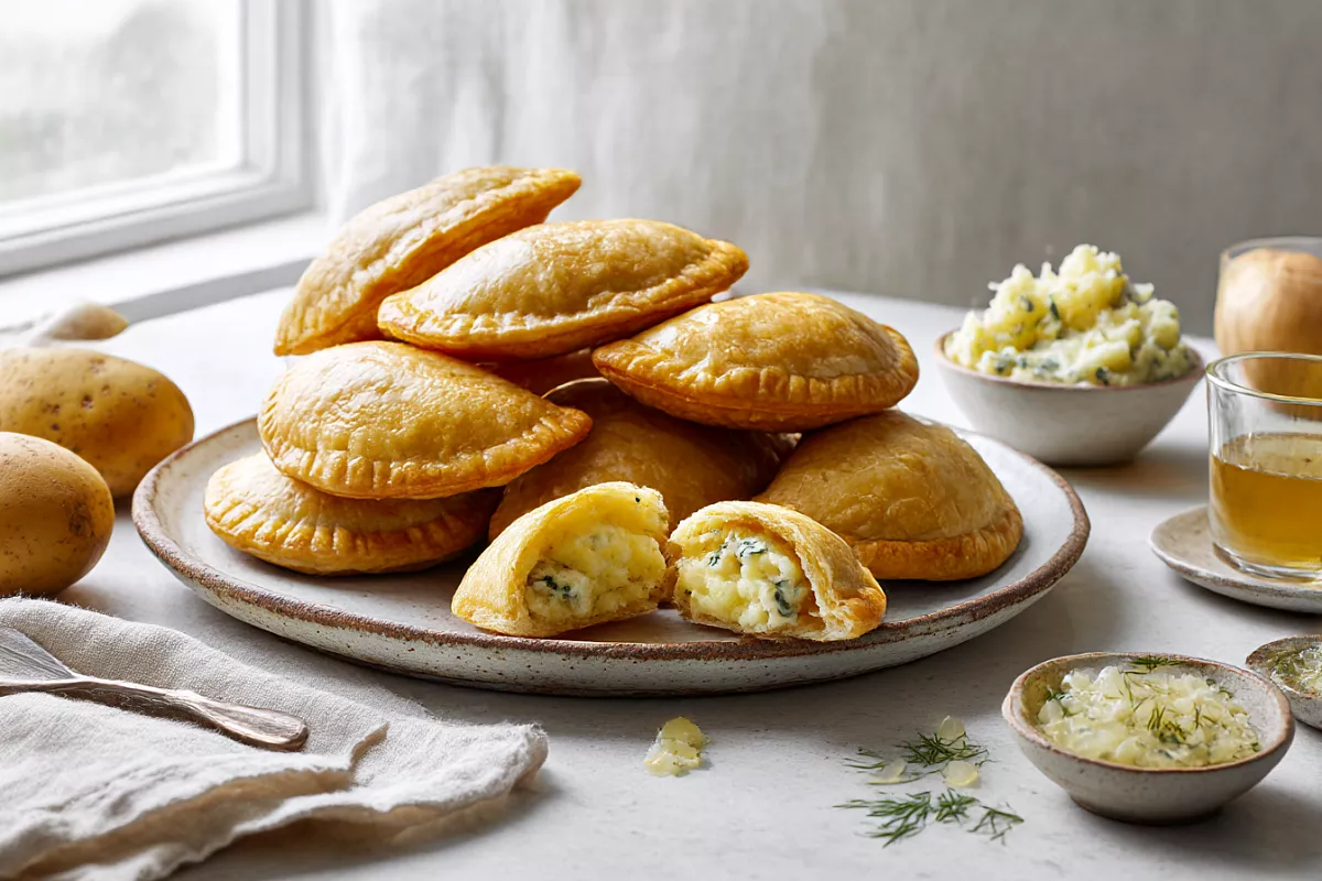 Внутри много картофельной начинки, тесто нежное и тонкое. Горячие пирожки просто тают во рту.