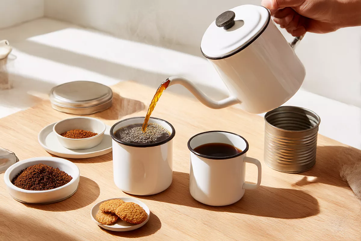 Грубый помол варится чуть дольше, чем мелкий. Остатки кофе храню в банке в холодильнике до пяти дней, просто разогреваю утром. На дне котелка снаружи мажу тонко растительным маслом — сажа потом легко оттирается.
