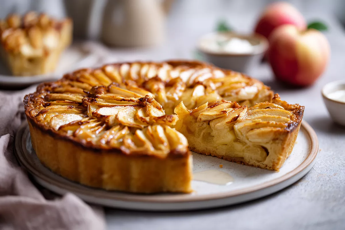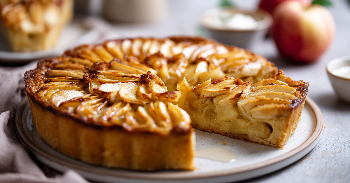 Нежный яблочный пирог с яркими дольками фруктов — простая и ароматная выпечка. Готовится из доступных продуктов, а заливка делает его особенно сочным.