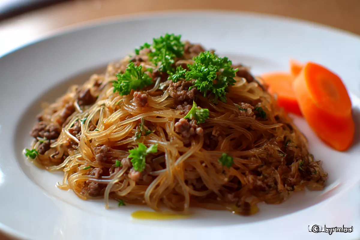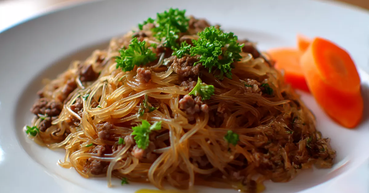 Это блюдо напоминает классические макароны по-флотски, но готовится диетическим способом — с овощным бульоном и тушёным фаршем. Получается сочным, ароматным и не тяжёлым.