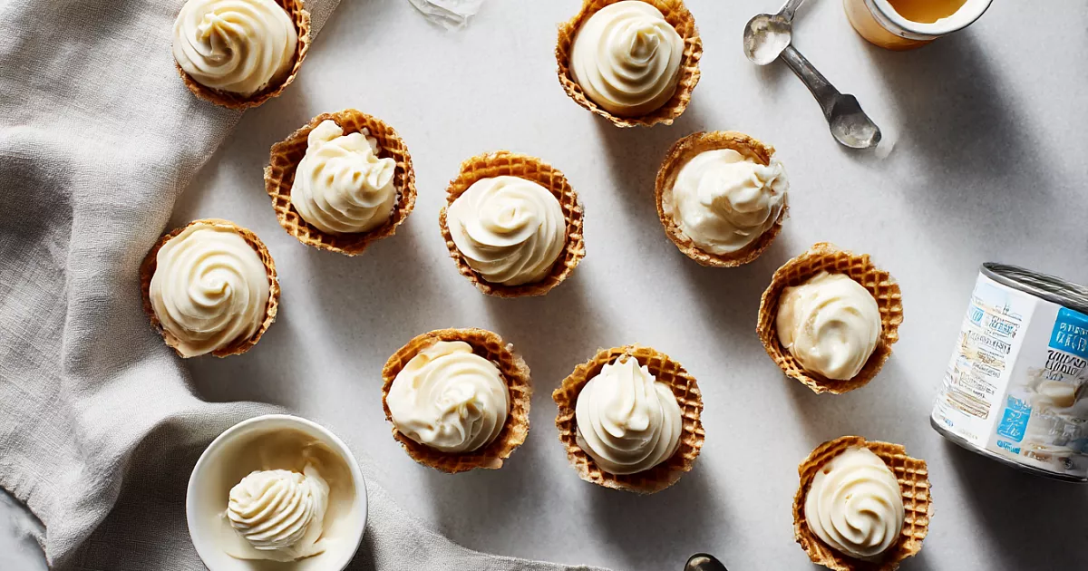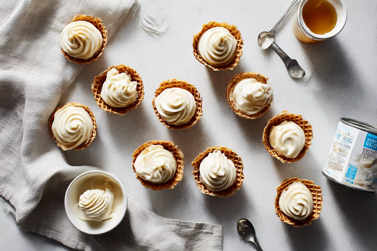 В этот момент вливаем холодное сгущённое молоко. Количество можно менять по вкусу: больше — слаще, меньше — нежнее. По желанию добавляем ванильный сахар или экстракт. Продолжаем взбивать до мягких пиков, но не переусердствуем, чтобы не перебить в масло.