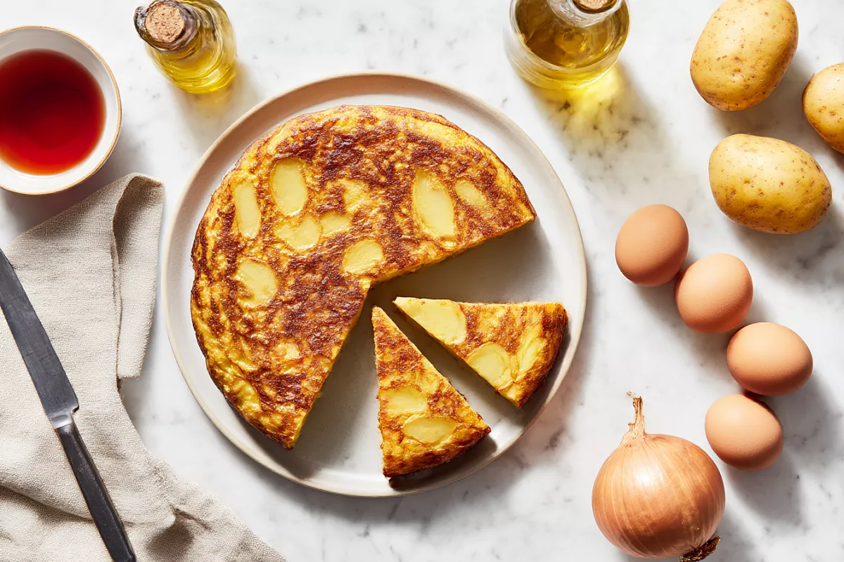 Это сытное блюдо из картофеля, лука и яиц — традиционный испанский завтрак. Оно получается нежным внутри с лёгкой корочкой, вкусным и горячим, и холодным.
