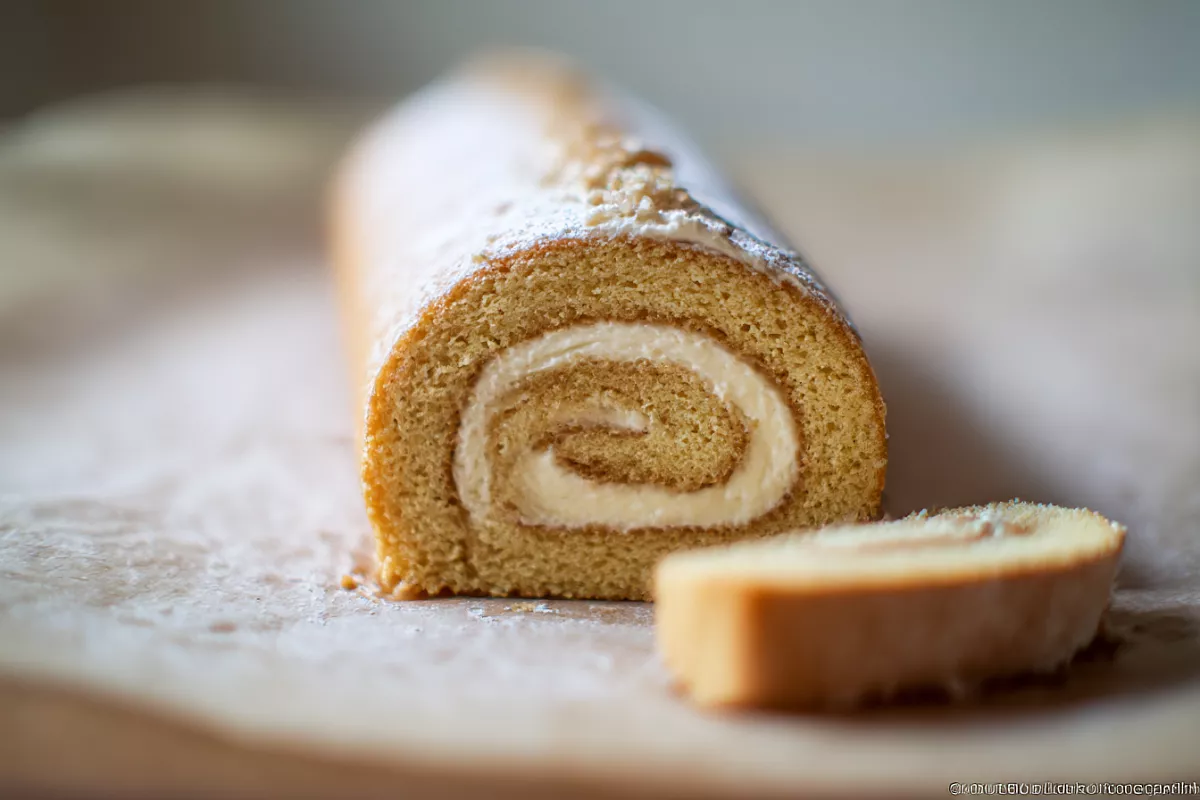 Разогреваем духовку до 170°C. Противень застилаем пергаментом, выкладываем тесто и равномерно разравниваем в прямоугольник толщиной около 1 см. Выпекаем 5–10 минут — корж должен остаться мягким и эластичным, чтобы не треснул при сворачивании.