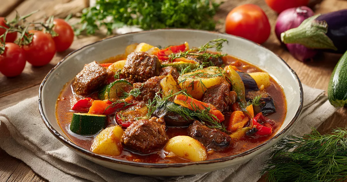 Лёгкое, полезное и очень вкусное овощное рагу с мясом — идеальный ужин.