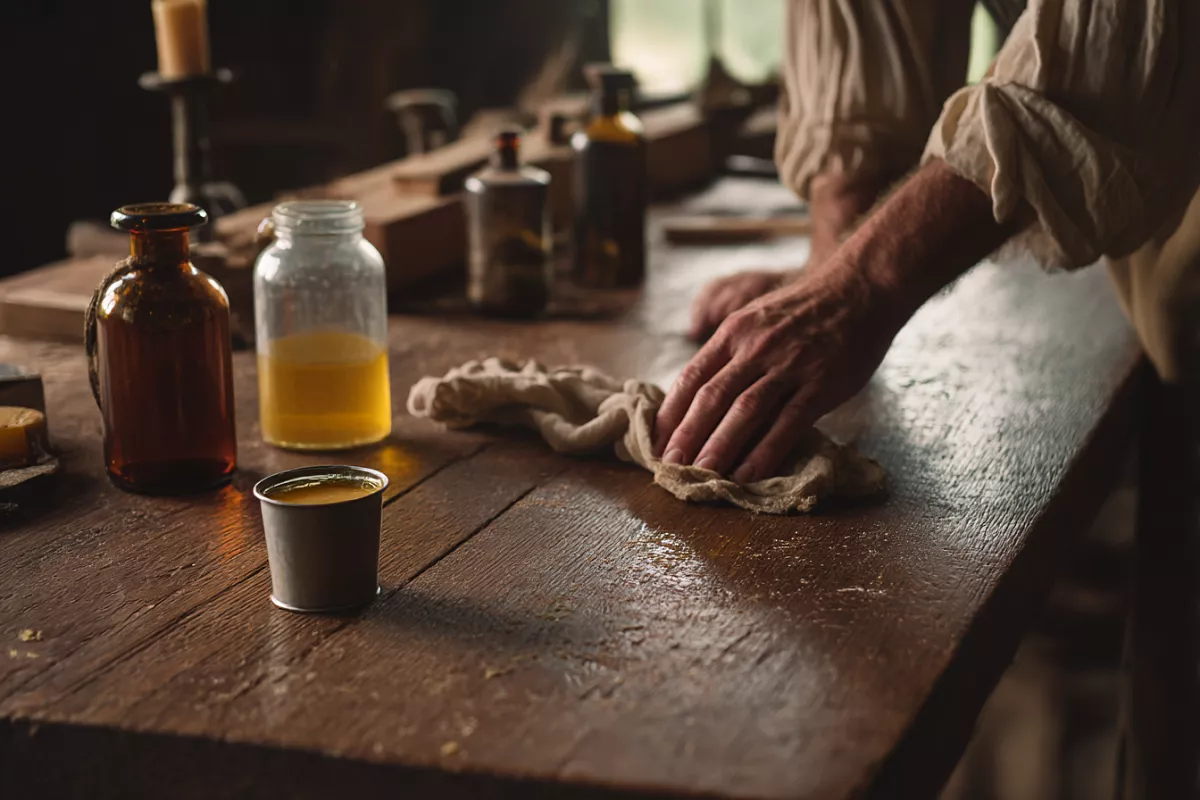 Рецепт: 1 часть воска + 1 часть варёного льняного масла + 1 часть чистого скипидара. Растопите на водяной бане, смешайте, остудите до пасты. Наносите тканью, втирайте, полируйте. Обновляйте раз в 1–2 года — 5 минут работы. Дерево будет дышать, жить и радовать вас столетиями, как в 1753 году.