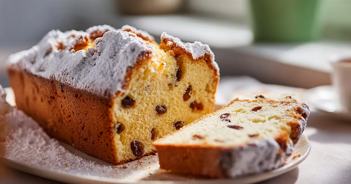 Готовый кекс оставляем в форме 10–15 минут, затем переносим на решётку до полного остывания. Посыпаем сахарной пудрой. Получается нежный, маслянистый, с сочным изюмом и хрустящей корочкой — вкус детства.
