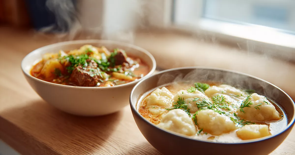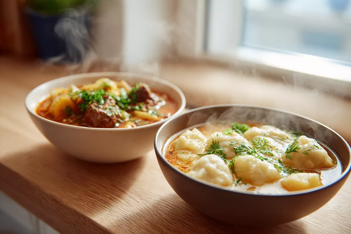 Делимся подробными рецептами двух домашних супов — один с мясом и овощами, второй с пельменями и сырной ноткой. Оба получаются наваристыми и уютными.