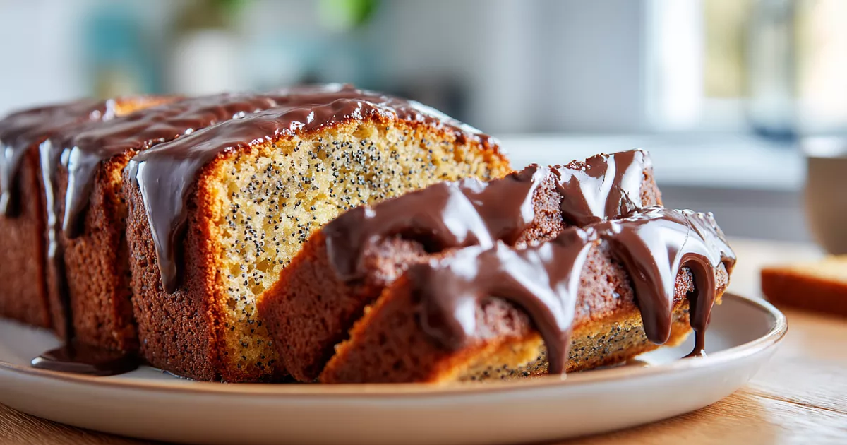 Пышный маковый пирог с насыщенной шоколадной глазурью получается мягким внутри и с блестящей пропиткой сверху — настоящий домашний десерт.