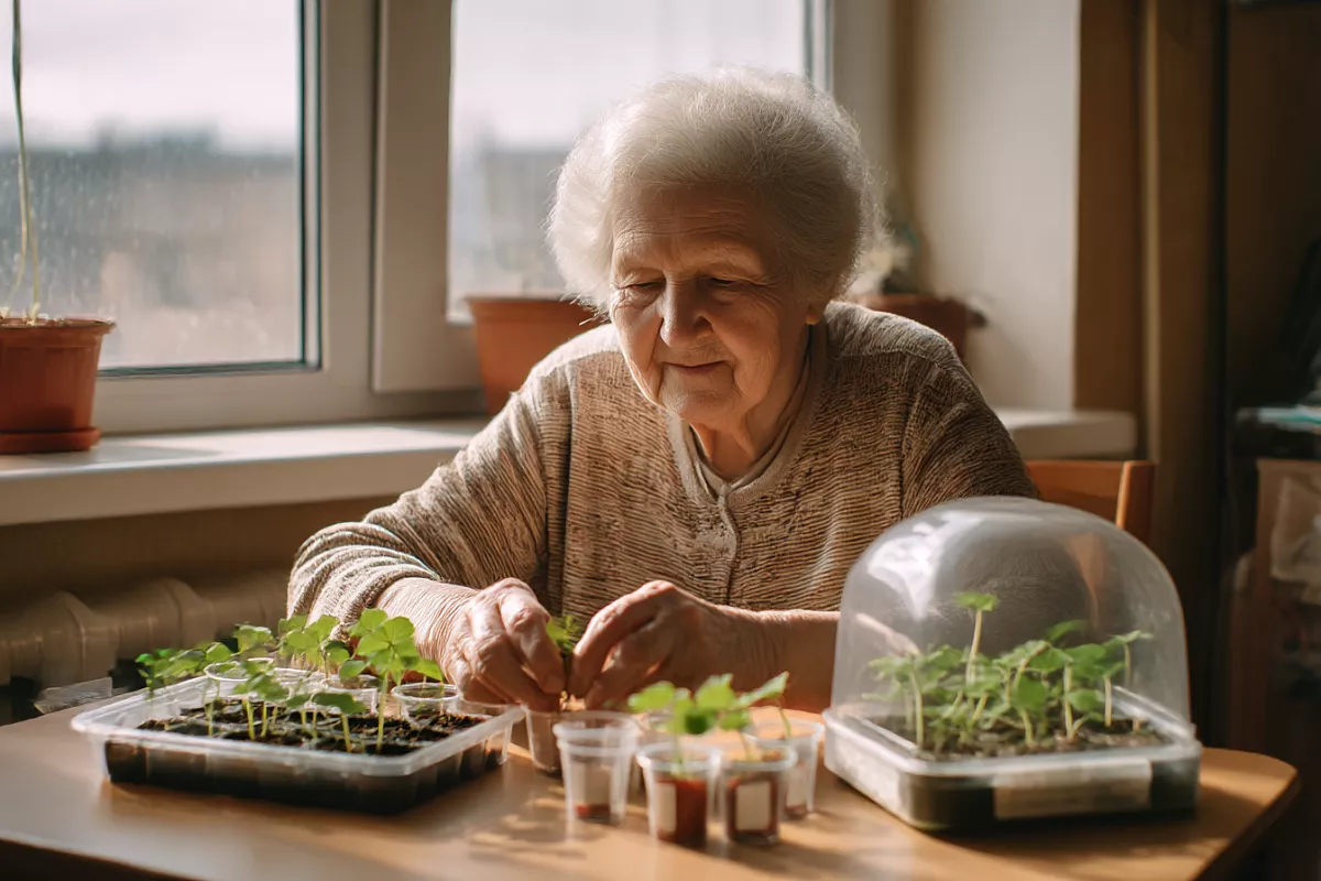 Если рассада уже пошла вверх, выравниваю ситуацию перепикировкой: пересаживаю её из глубоких ёмкостей в контейнеры, где грунт заподлицо, и даю нормальную вентиляцию.