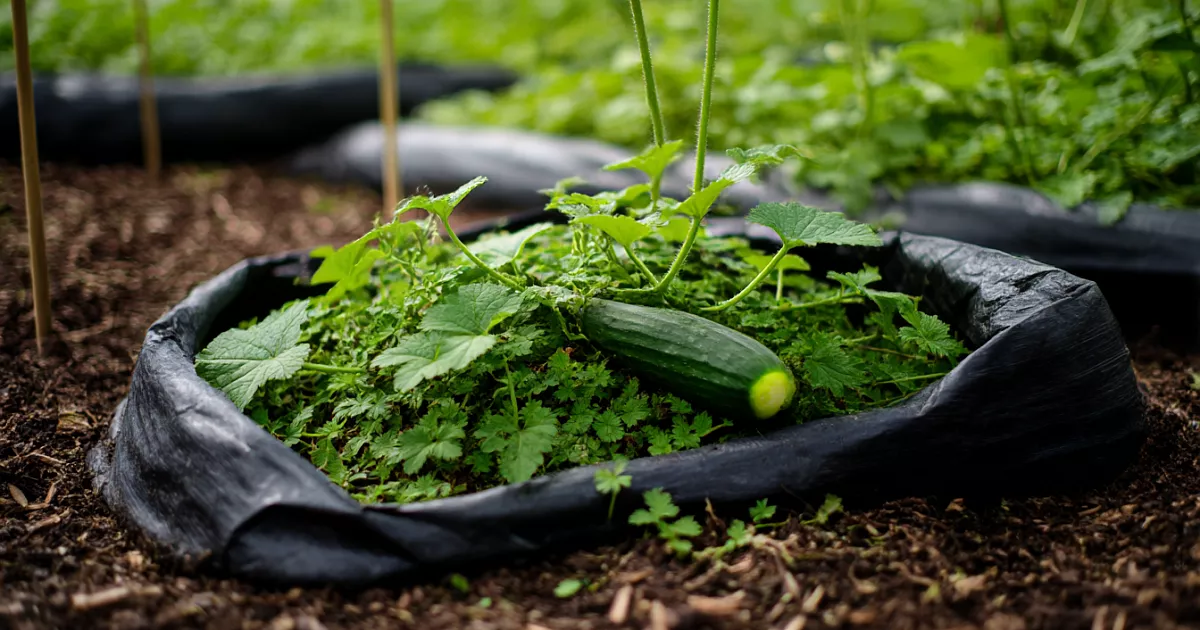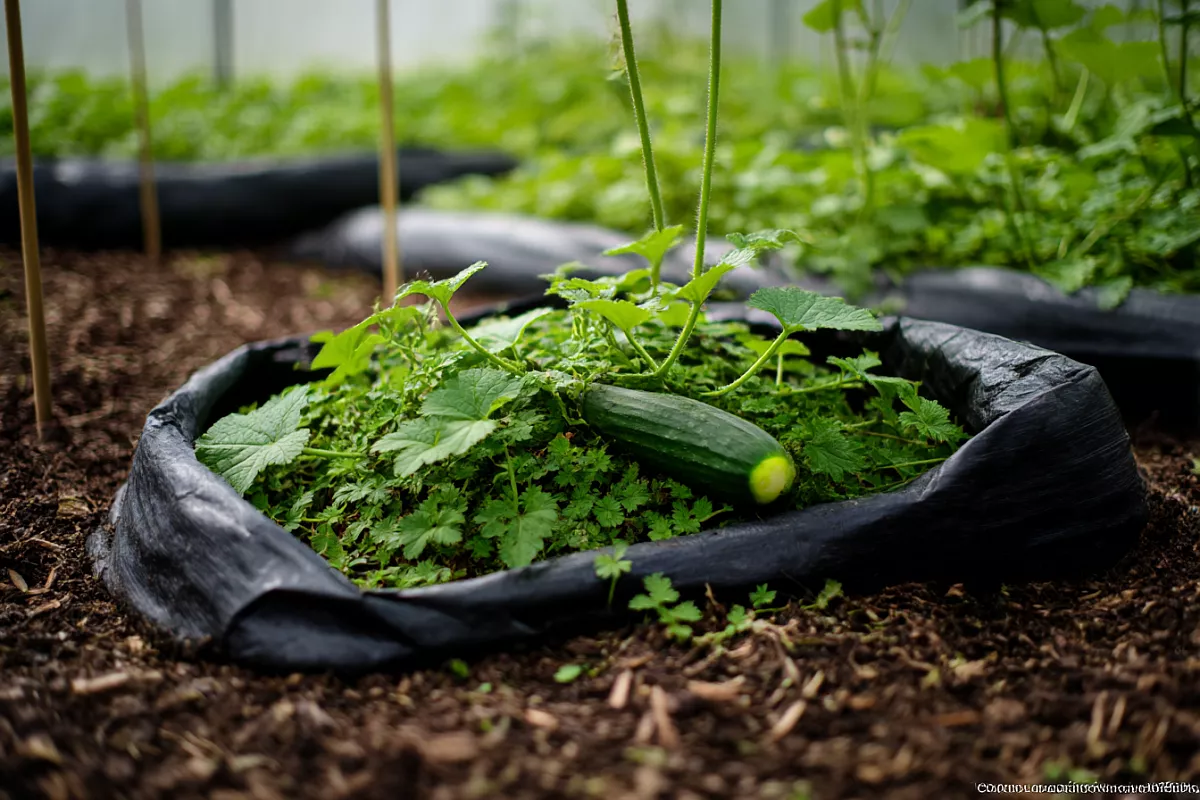 Температура земли в пакете будет примерно такой же, как температура воздуха в теплице, поэтому важно ставить пакет в самое тёплое место и не забывать про укрытие. Можно добавить мульчу — например, крапиву — чтобы дольше держалась влага и грунт не пересыхал.