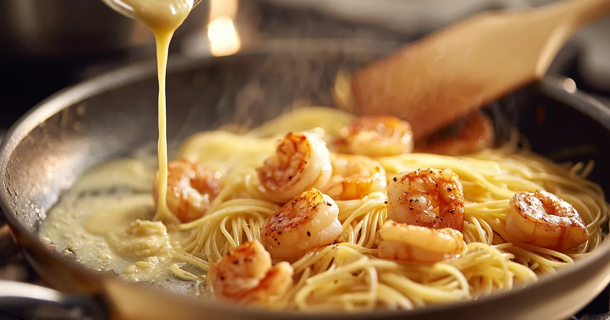 Это блюдо готовится очень быстро и получается невероятно вкусным. Нежные креветки в густом сливочном соусе с чесночным ароматом и идеальной пастой.