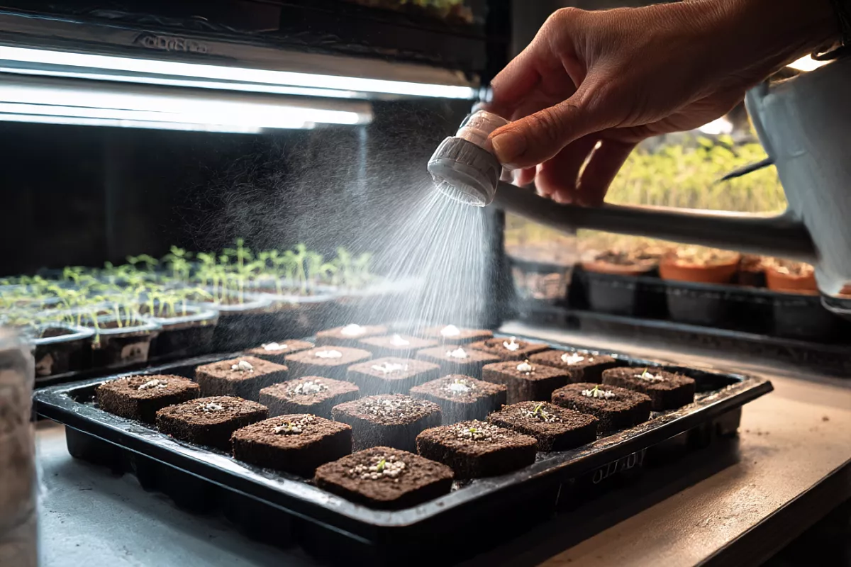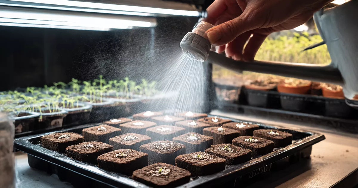 Качественные дражированные семена. Торфяные таблетки 41–44 мм (для крупных сортов) или 33 мм. Теплички или контейнеры высотой 5–7 см. Грунт: просеянный Агробалт или почвенные брикеты. Фитолампы 25–30 Вт.